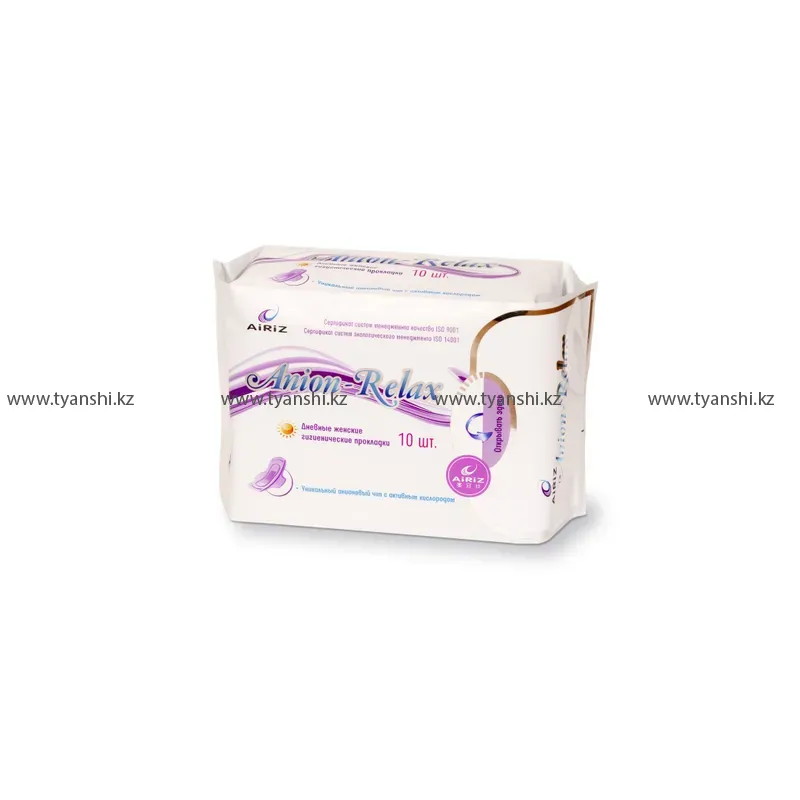 Гигиенические прокладки Anion-Relax AIRIZ с исключительной способностью впитывания рекомендуются для женщин с чувствительной кожей. Они обеспечивают уверенность и чувство полного контроля благодаря своему ультратонкому дизайну, который идеально подходит по форме тела, сохраняя чистоту и комфорт на продолжительное время.