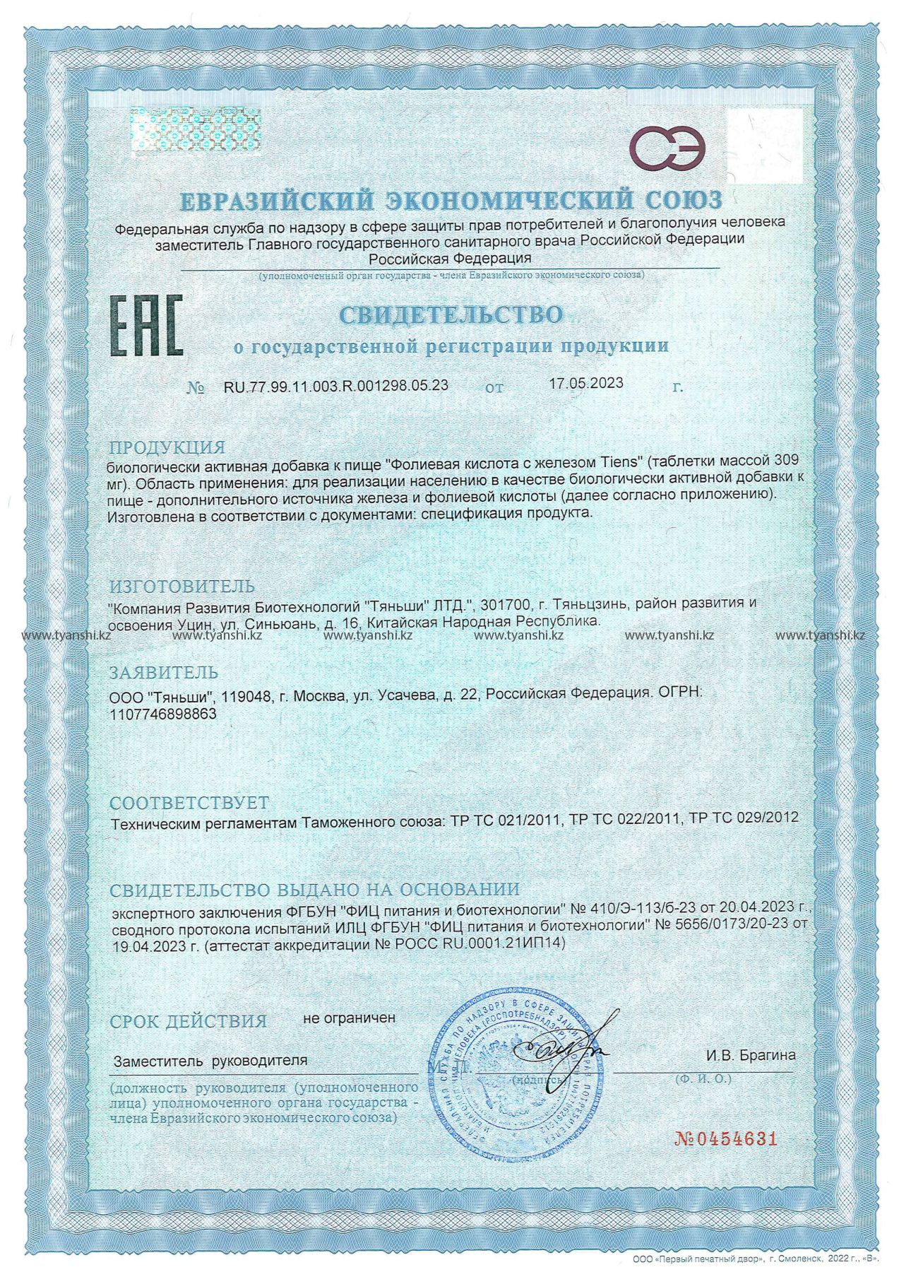 Фолиевая кислота с железом "Тяньши" Упаковка: 309 мг × 120 таблеток