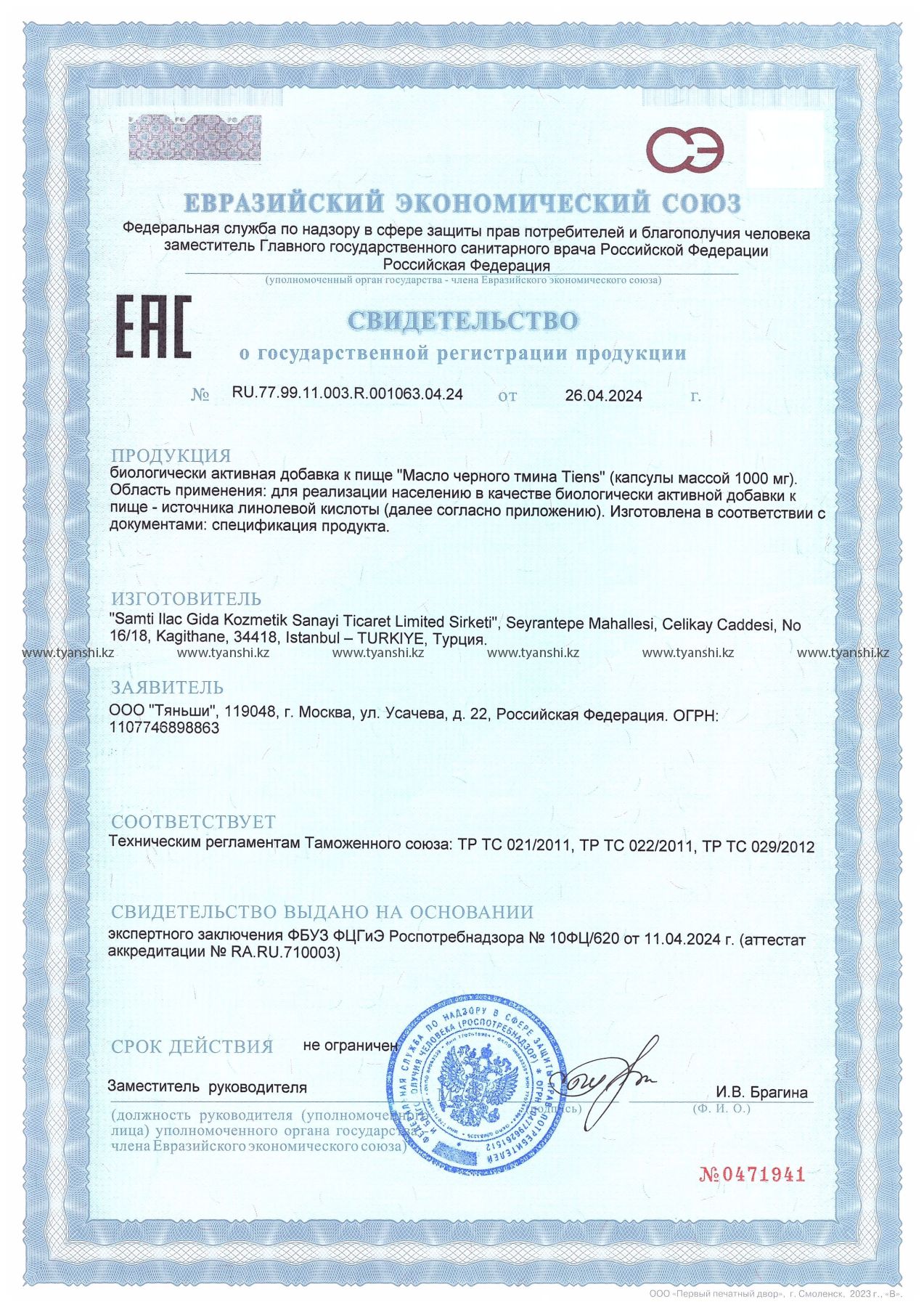 Масло черного тмина "Тяньши" 1000мг х 60 мягких капсул