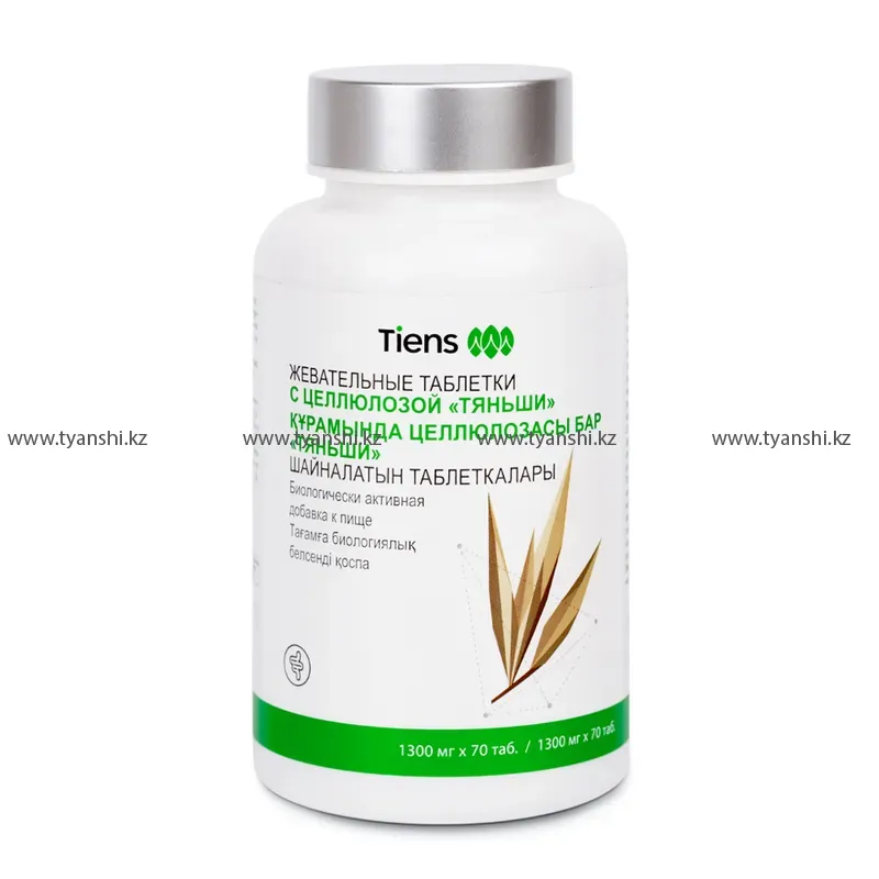 Жевательные таблетки с целлюлозой "Тяньши" Упаковка: 1300 мг × 70 таблеток.